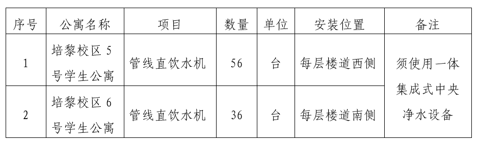 一、项目名称:beat365在线唯一官网培黎校区学生公寓5、6号楼饮水机服务项目