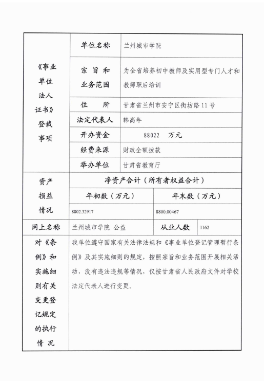 根据甘肃省事业单位登记管理局相关要求,现将beat365在线唯一官网《事业单位法人年度报告书》公示如下。