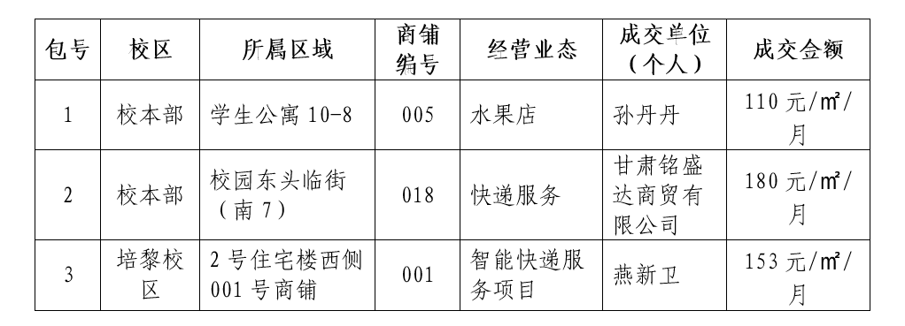 四、主要标的信息:beat365在线唯一官网两校区商铺出租1项