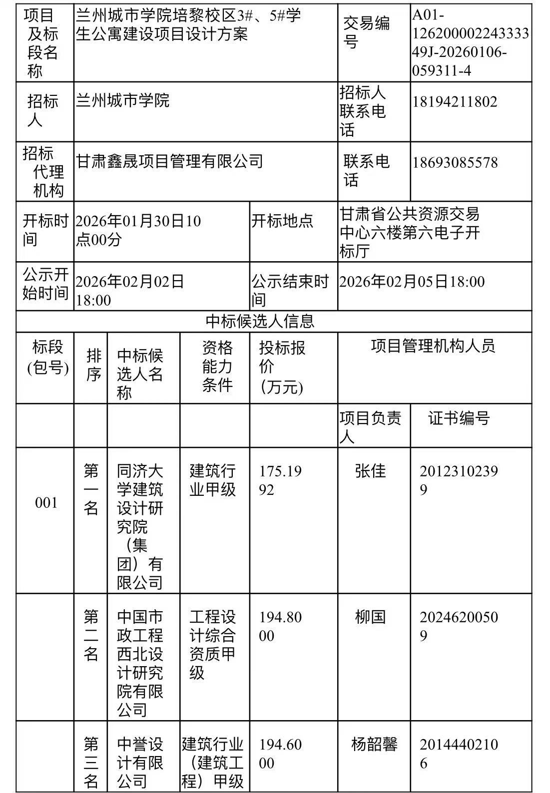 备注:对以上结果如有质疑或投诉,请向甘肃省建设工程招标投标管理办公室反映。