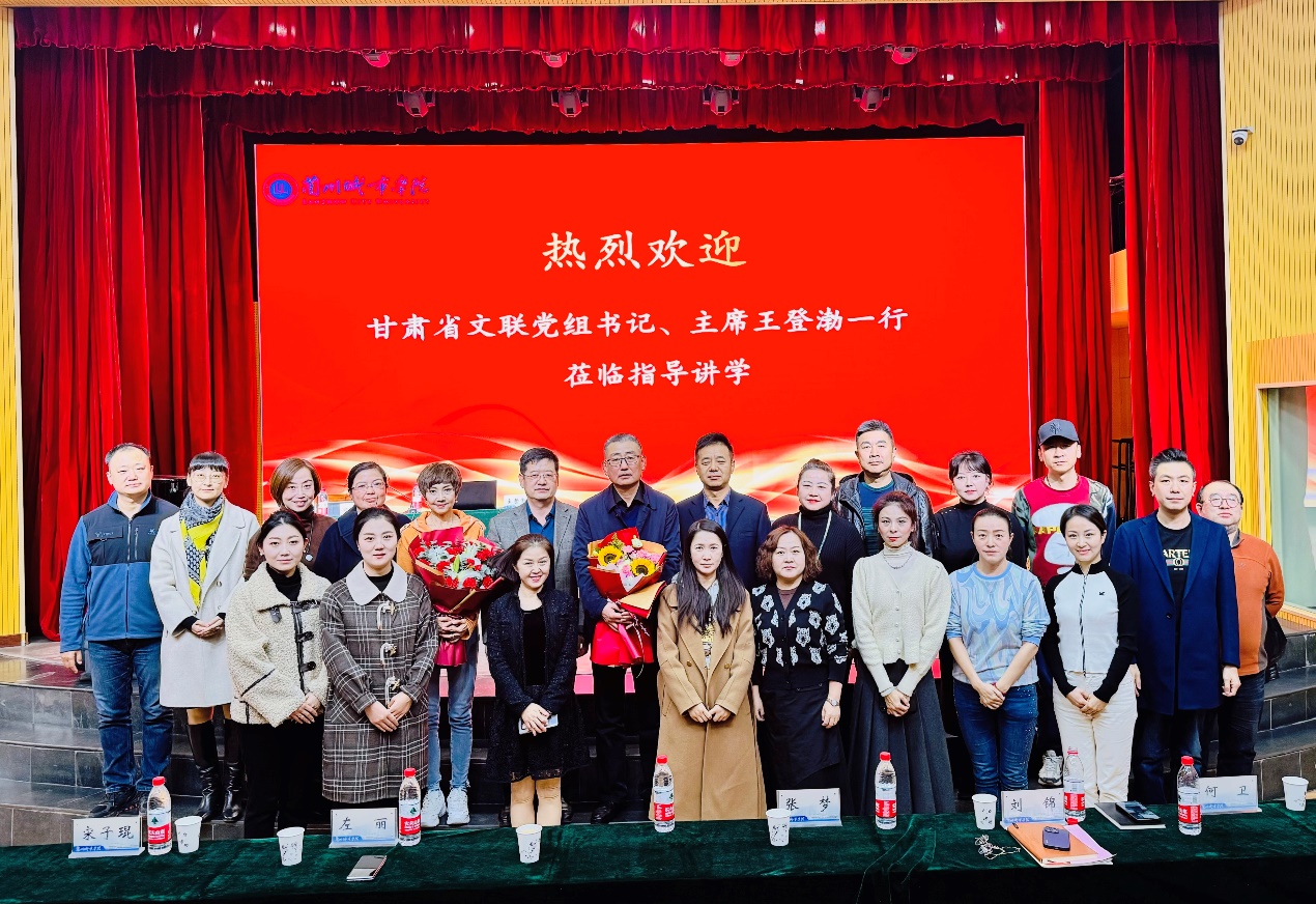 为贯彻落实习近平文化思想和关于教育工作的重要指示精神,推动思政建设,将思想铸魂与艺术教育深度融合,牢牢把握“学思想、强党性、重实践、建新功“的总要求,11月10日,音乐学院邀请甘肃省文联党组书记、主席王登渤来音乐学院指导工作并交流讲学,甘肃省舞蹈家协会常务副主席左丽,学校党委常委、副校长魏晋华,党委宣传部负责人和音乐学院师生参加活动。