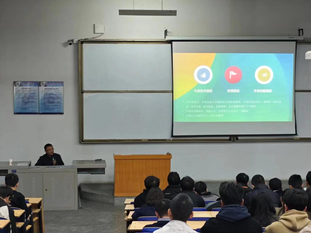 宣讲会上,甘肃省电力投资集团有限责任公司的负责人介绍了公司的发展历程、业务范围以及未来的职业发展规划,并和学生在招聘岗位、入职要求、公司文化、发展机会等方面进行深入交流。