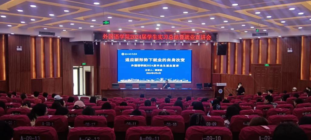 5月6日下午,外国语学院在大学生活动中心举办了2024届学生就业宣讲会。本次宣讲会共分为适应就业新形势的自身转变、天童教育集团教师招聘及皮山县教育局教师招聘三个主题。
