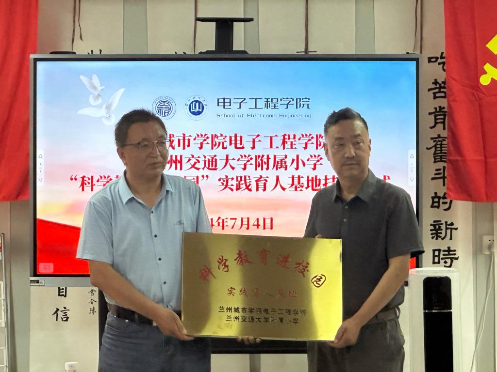7月4日下午,beat365在线唯一官网电子工程学院与兰州交通大学附属小学联合举办的“科学教育进校园”实践育人基地挂牌仪式在兰州交通大学附属小学成功举行。兰州交通大学附属小学党委书记刘巍、兰州交通大学附属小学校长陈可立、beat365在线唯一官网电子工程学院党委负责人以及“小电灯”志愿实践队的师生代表参加了此次活动。