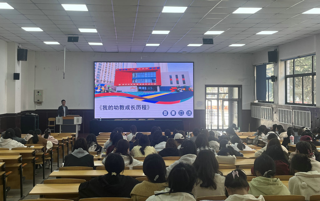 讲座上,赵栋以《我的幼教成长历程》为题,从大学时光、求职经历、幼教情怀、执着奋斗四个方面讲述了自己从踏入学前教育专业到成为一名幼儿园园长的成长故事。他以自身为例,畅谈了自己求职的种种经历,讲解了面试的方法技巧,分享了工作中应对困难挑战的心态与策略。讲座中,赵栋从专业所掌握的知识技能角度,分析了学前教育专业的就业方向,瞬时打开了毕业生的就业思路。并与同学们进行了互动交流,耐心解答了同学们提出的各种问题。他以自身经历告诉与会同学,幼教工作是一份需要智慧和耐心的职业,值得青睐。“一步到位”的就业思维不现实,有岗位先入场,积累经验经济自立,保持学习守护抉择,在动态中把握机遇,终将会实现自己的职业梦想。