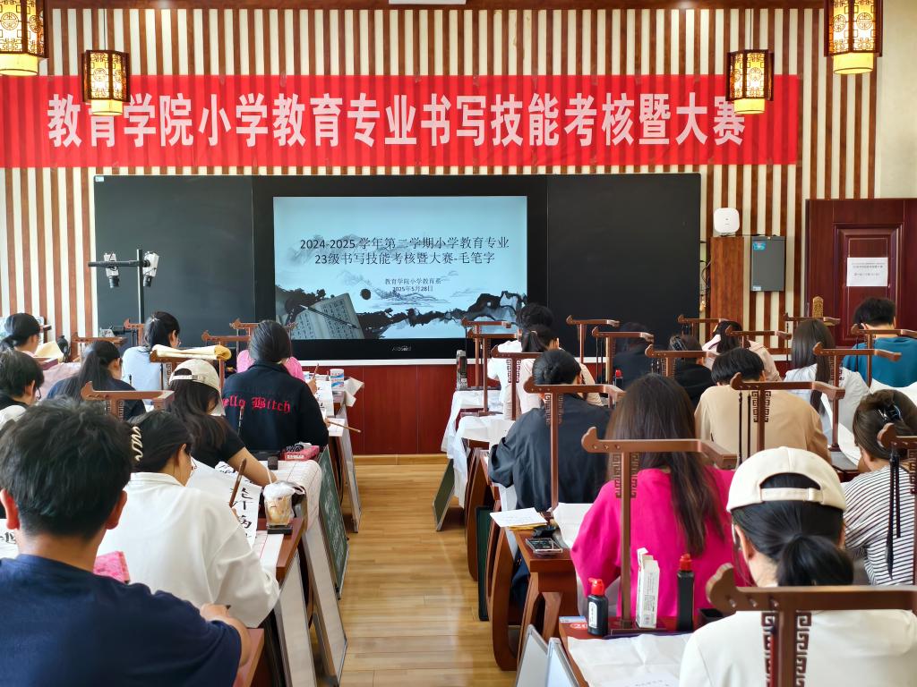 为进一步提升师范生的书写能力与教学素养,落实《小学教育专业人才培养方案(2023版)》相关要求,教育学院5月28日组织开展了2023级学生书写技能考核大赛。