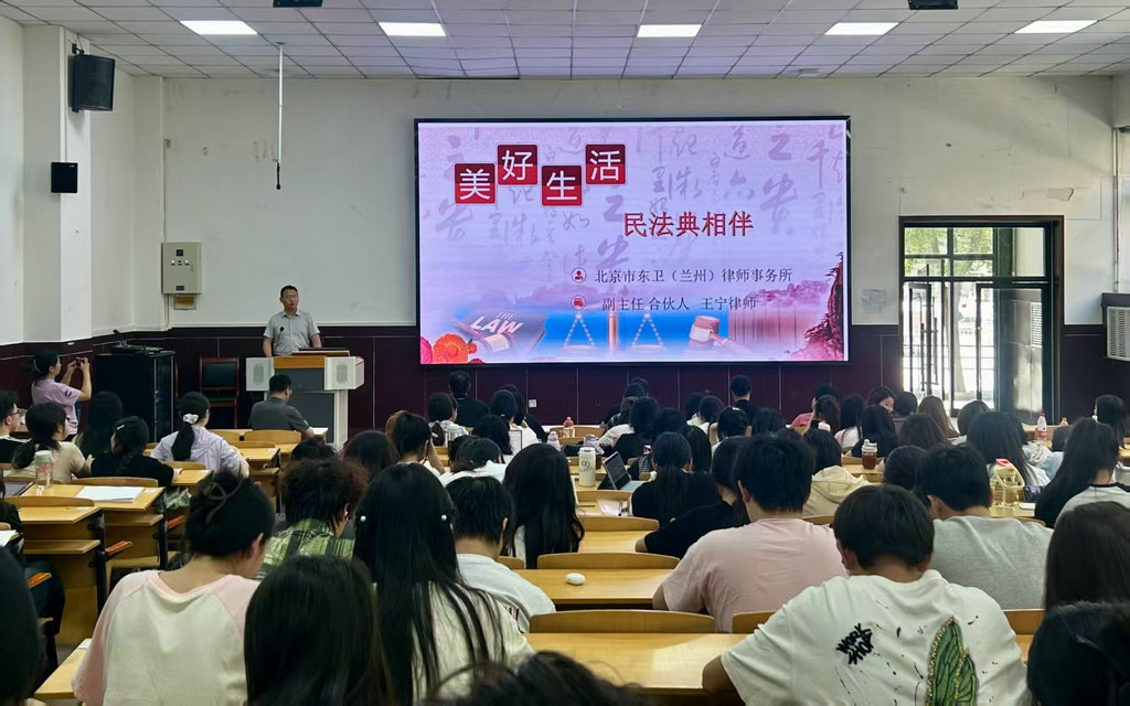 讲座邀请西北师范大学法律硕士专业校外导师、北京市东卫(兰州)律师事务所副主任王宁律师主讲。王宁从民法典的重大意义、结构框架说起,从总则编、物权编、合同编、人格权编、婚姻家庭编、继承编、侵权责任编等七个维度,通过“法条+案例+互动”形式,详细讲解了民法典中与群众切身利益密切相关的法律条款,深入浅出地解读民法典核心要义,让与会人员直观感受到民法典对人民生活的影响和保护。王宁在讲座中谈到,五年前的今天(5月28日),十三届全国人大三次会议表决通过《中华人民共和国民法典》,这是新中国第一部以“法典”命名的法律,开创了我国法典编纂立法的先河,具有里程碑意义。五年来,这部被誉为“社会生活的百科全书”的法典深刻影响着14亿中国人的日常生活,从生老病死到婚丧嫁娶,从物权、合同到人格尊严,它以系统化的规则守护着每个人的权利与自由。希望大家积极宣传普及民法典,让民法典走进寻常百姓家,走进日常生活中,成为公民权利的“宣言书”、社会矛盾的“调节器”。让民法的阳光普照大地,为美好生活筑牢法治根基。