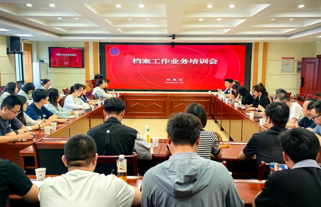 档案业务培训:围绕中心、服务大局,推动学校档案工作再上新的台阶。为深入贯彻落实《高等学校档案管理办法》,扎实推进学校档案管理规范化建设,切实提升兼职档案管理员队伍专业化水平,5月19日下午,档案馆举办了2025年度档案工作业务培训会,来自各部门、学院的35名兼职档案员参加。培训紧扣学校档案工作发展需求,内容详实、注重实效,为兼职档案员队伍搭建了学习交流平台。通过专题培训与经验交流,进一步提升档案管理业务能力,推动学校档案管理工作迈向更高水平,助力学校事业高质量发展。