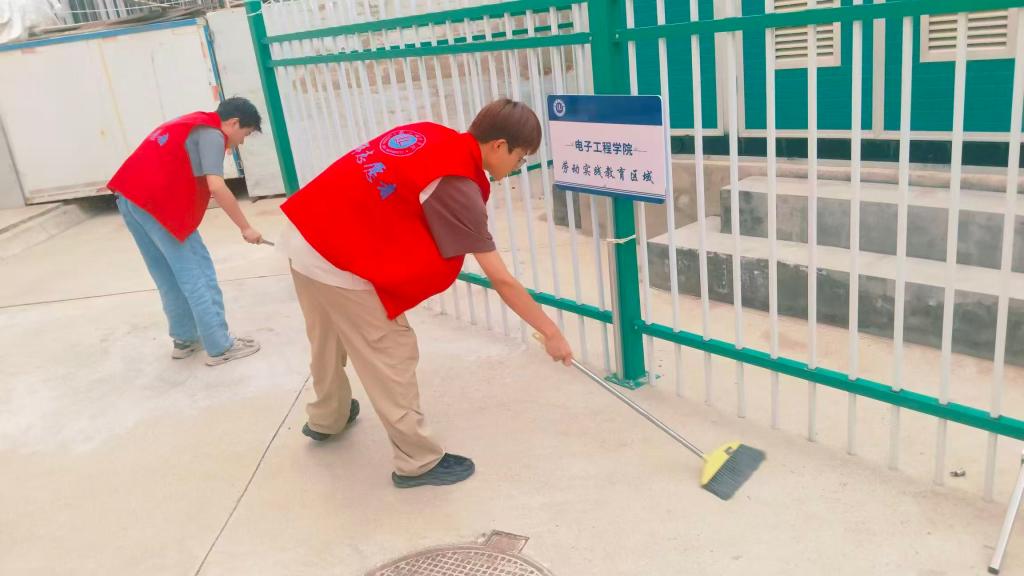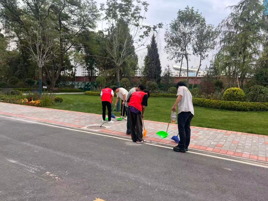 各学院师生按照划分的“责任区”,有序投入到校园环境美化劳动中。同学们分工协作,认真清理绿化带内的垃圾、落叶,擦拭公共设施,在劳动中展现出积极向上的精神风貌和集体荣誉感。