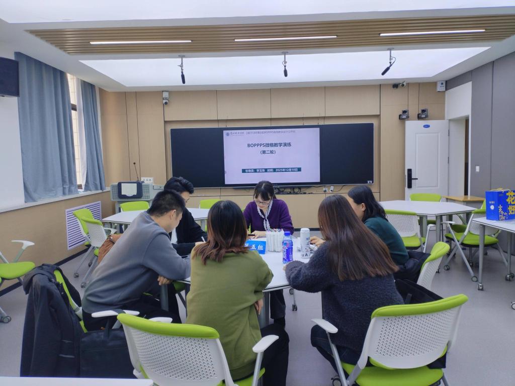 在教学实践演练阶段,25名参训教师分为5组进行了两轮高强度实战演练。在引导员指导下,教师们依据OBE理念与BOPPPS结构设计教案、制作课件、进行试讲并录制微格视频,通过小组互评与引导员反馈,不断优化教学设计,实现从理论到实践的迭代提升。