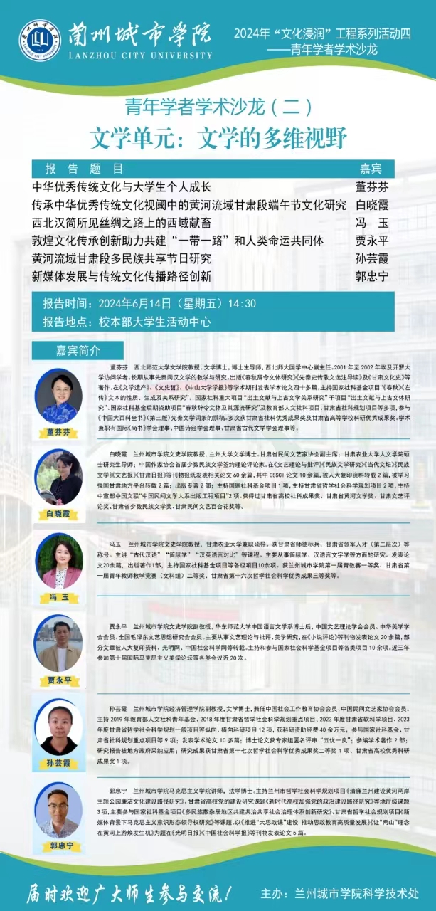 beat365在线唯一官网2024年“文化浸润”工程系列活动四——青年学者学术沙龙(二)“文学单元:文学的多维视野”,具体事宜公告如下: