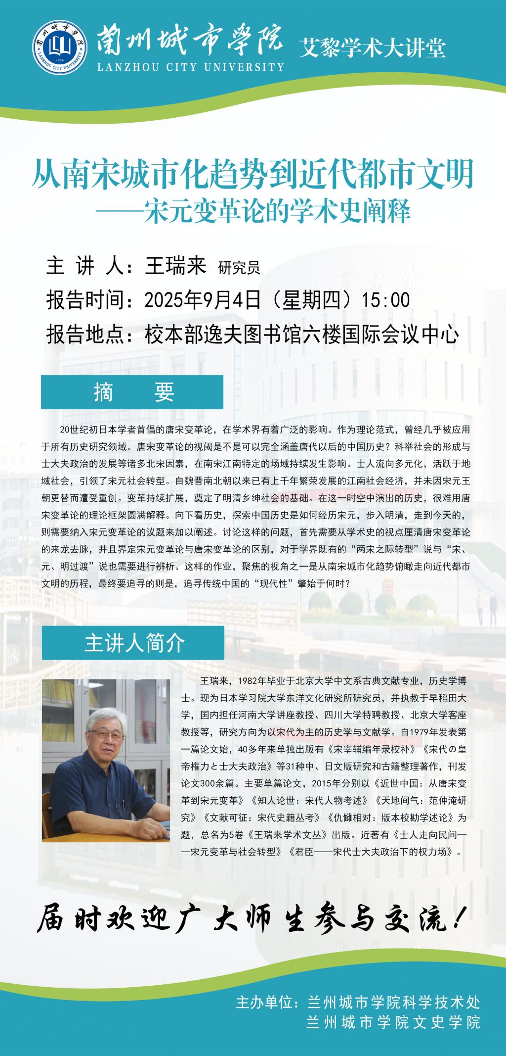应科学技术处和文史学院联合邀请,日本学习院大学东洋文化研究所王瑞来研究员将来beat365作学术报告。具体事宜公告如下: