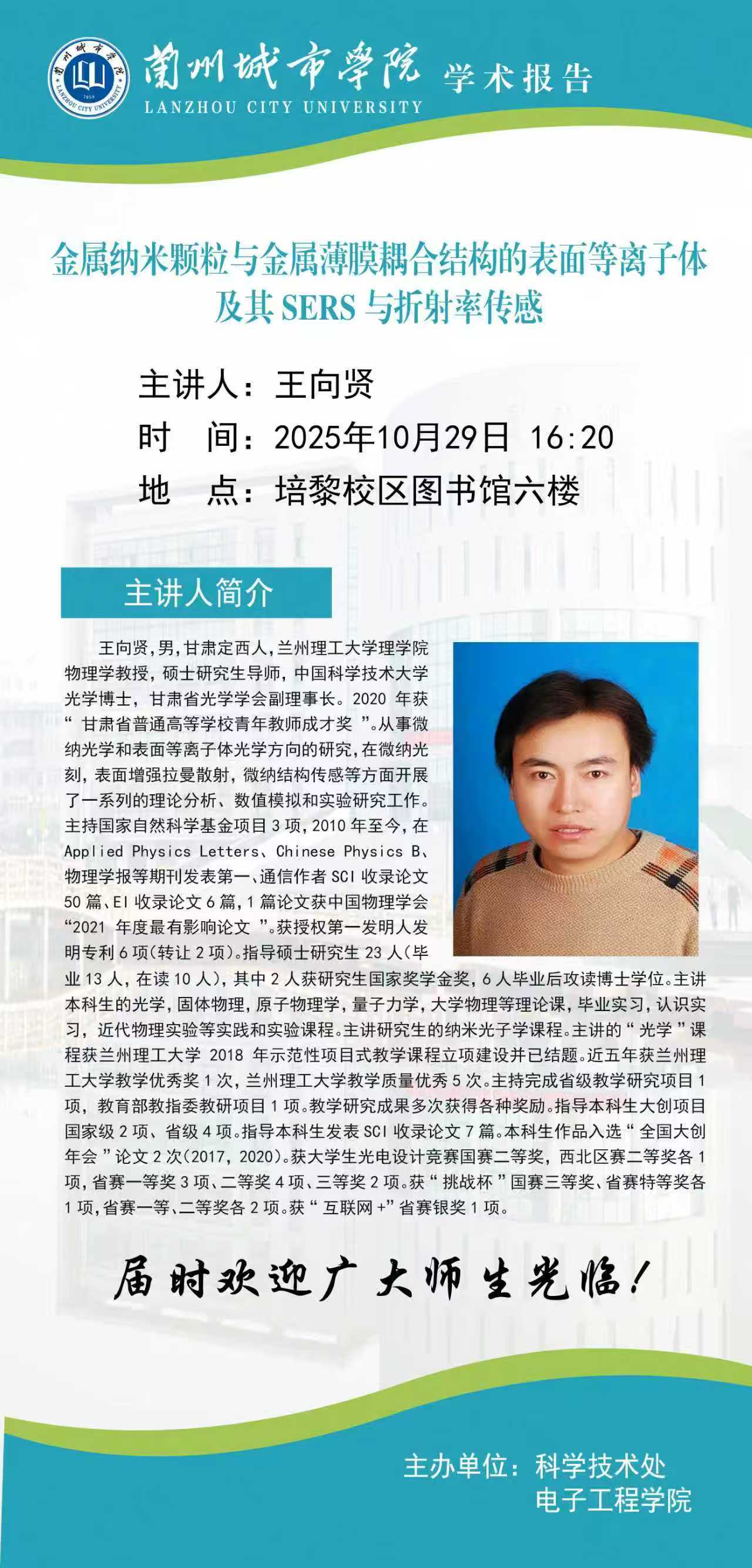 应科学技术处、电子工程学院联合邀请,兰州理工大学王向贤教授来beat365作学术报告。具体事宜公布如下:
