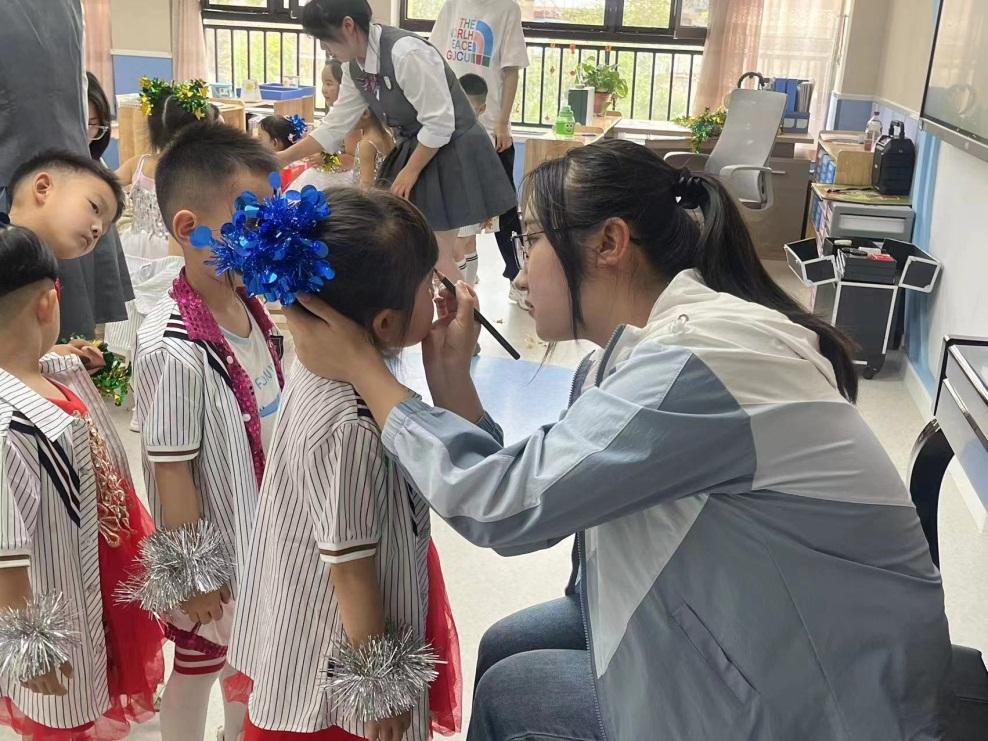 在实践活动中,师生共同学习了习近平总书记关于劳动教育的重要论述精神。随后,同学们全程参与组织锦睿安幼儿园六一儿童节节目汇演,大学生们帮助小朋友化妆,共同布置演出会场,还为小朋友们表演了大合唱《爱我中华》和藏舞《没有共产党就没有新中国》,用“大手拉小手”的方式在参与和实践中共同践行“以劳育人 思政铸魂”的劳动教育理念。