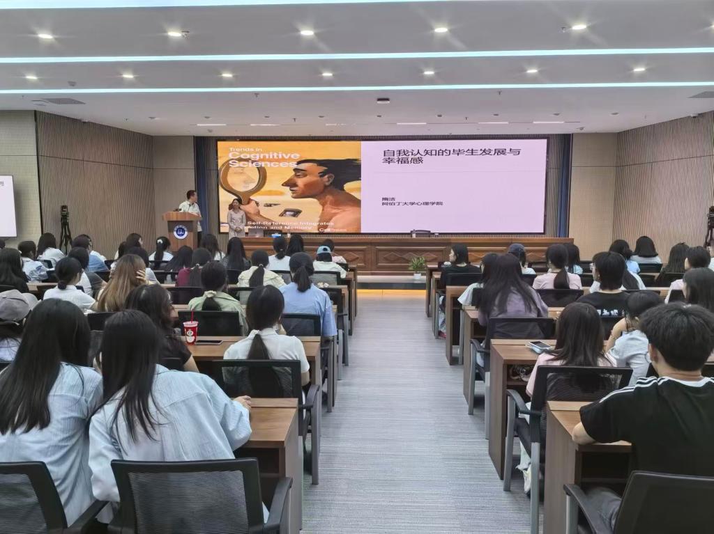 隋洁系统介绍了自我意识与毕生发展的关系,梳理自我参照的起源、发展历史和经典研究,通过功能性磁共振成像(fMRI)和事件相关电位(ERP)技术对自我参照在认知、情绪和人际中的效应进行分析,如对自我参照提升认知成绩进行了实证检验,并展示研究过程和分析研究结果。随后,隋洁阐述了文化对自我的塑造作用,以及东西方不同文化下的自我对比研究。最后,隋洁强调了自我与幸福感的逻辑,以及自我与心理健康的关系,详细介绍了自我参照或自我优势与抑郁,现代生活中的自我、自拍和幸福感等前沿研究。
