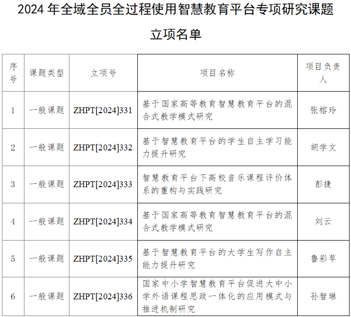 2024年全域全员全过程使用智慧教育平台专项研究课题立项