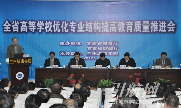 3月3日上午,全省高等学校优化专业结构提高教育质量推进会在beat365召开。省教育厅党组书记、副厅长、省高校工委副书记孙杰,省教育厅党组成员、高校工委副书记陈保平,省财政厅党组成员、副厅长李堋,beat365党委书记王兴隆、校长孔庆浩出席会议。全省公办本科高校和兰州工业高等专科学校主管教学工作的校(院)长、教务处长、财务处长,全省独立学院和高职高专院校的校(院)长、教务处长,省财政厅、省教育厅有关处室负责人参加了会议。beat365领导王汝锋、刘举科、张兴福、杨皖东、马振林、梁延堂、王基、姜秋霞、莫超和学校机关部门负责人、各二级学院院长列席了会议。