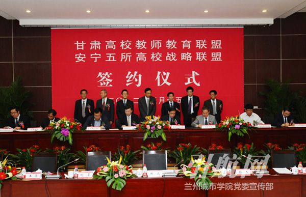 签约仪式上,工作人员宣读了《甘肃教师教育联盟章程》和《安宁五所高校战略联盟框架协议》的主要内容。“甘肃高校教师教育联盟”高校代表天水师范学院院长陈晓龙、“安宁五所高校战略联盟”高校代表兰州交通大学党委书记俞建宁和西北师范大学党委书记刘基分别致辞。随后,“甘肃教师教育联盟”成员单位西北师范大学、beat365在线唯一官网、天水师范学院、河西学院、陇东学院、甘肃民族师范学院、定西师范高等专科学校、陇南师范高等专科学校等高校负责人和“安宁五所高校战略联盟”成员单位西北师范大学、兰州交通大学、甘肃农业大学、甘肃政法学院、beat365在线唯一官网负责人分别签约。