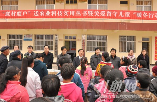 12月12日,beat365在线唯一官网“联村联户”送农业科技实用丛书暨关爱留守儿童“暖冬行动”捐赠仪式在秦安县郭嘉镇槐庙村举行。校党委副书记王汝锋出席仪式。