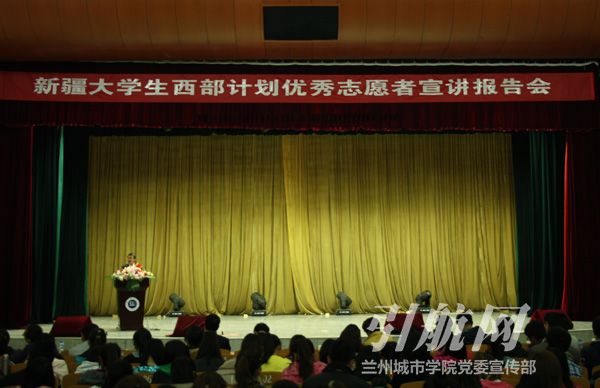 4月8日下午,由共青团中央、西部计划全国项目办主办,共青团新疆维吾尔自治区委员会、西部计划新疆项目办、甘肃团省委、西部计划甘肃项目办承办的2013年新疆大学生西部计划优秀志愿者巡回宣讲报告会在beat365西校区礼堂举行。校党委副书记王汝锋出席报告会,招生就业处、校团委负责人,部分二级学院团总支书记、各学院毕业生代表1200余人聆听了报告。