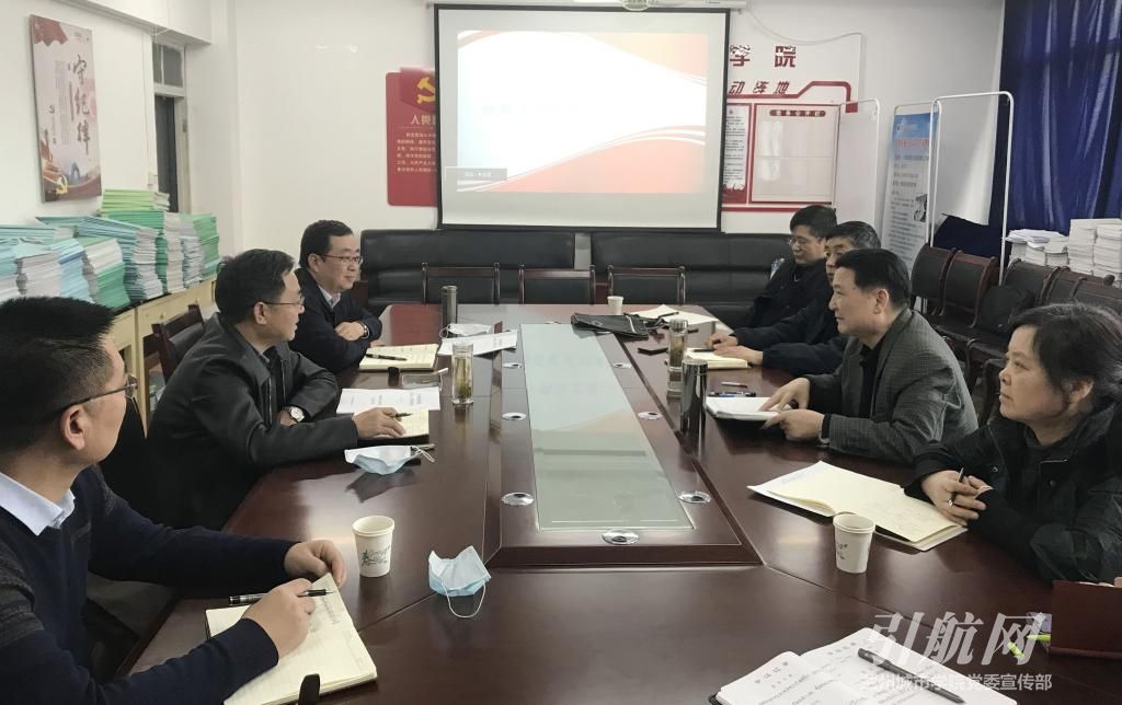 在传媒学院,许尔忠指出,学院要进一步打造独特的学院文化和学院精神,传承严谨、务实的工作作风,从四个方面寻找突破:一是融合,以开放的姿态,整合资源,加强与社会产业、行业、企业的合作;二是特色,在竞争中打造特色,在多维度、多层次形成自己的特色,能够做到“人有我优”,以特色兴院;三是质量,立足本科标准,瞄准出口,优化学科知识体系,注重学生创新思维的培养,做到以质量立院;四是提升,注重教学研究和科学研究,做到教师教学和科研能力的整体提升,为学院的长远发展奠定坚实的基础。王学军指出,传媒学院要在五个方面重点开展工作,一是抓好一流专业建设,制定详实的一流专业建设方案,做好国家一流专业和省级一流专业申报工作;二是扎实推进人才培养,充分落实部校共建新闻学院政策,推进卓越新闻人才培养;三是加强融合传媒技术实验教学中心建设,积极申报和建设国家级虚拟仿真实验室项目,探究信息化条件下的教育教学,为教育教学提供坚实保障;四是立足现有办学条件,克服困难,配合学校发展规划,主动开展学院各项工作;五是加强课程思政建设,发挥课堂主渠道、主阵地作用,结合专业特点,挖掘课程思政元素,立德树人,引导学生树立正确的世界观、价值观、人生观。