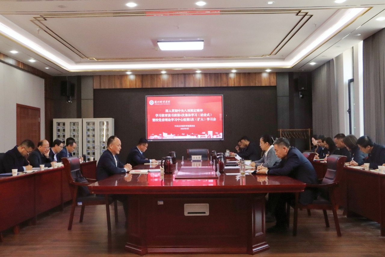 4月24日,学校深入贯彻中央八项规定精神学习教育读书班第4次集体学习(结业式)暨校党委理论学习中心组第5次扩大学习会在校本部逸夫图书馆5楼会议室举行。校党委书记曹洁主持会议并作总结讲话,全体在家校领导、校党委委员、纪委委员、党委部门负责人、各基层党委负责人参加学习。