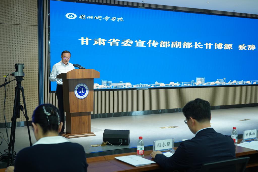 王成勇代表甘肃省社科联对高研院成立表示祝贺。他提出高研院应坚守传承创新使命,深入挖掘中华优秀传统文化内涵与时代价值,推动其创造性转化、创新性发展,为构建中国特色哲学社会科学贡献智慧;聚焦服务地方发展,充分发挥学科、人才和资源优势,围绕甘肃省经济社会发展重大问题开展深入研究,打造高水平新型智库,提出高质量决策咨询建议;深化开放合作交流,通过举办学术活动、建立合作关系,提升学术影响力。他表示省社科联将全力支持高研院发展。