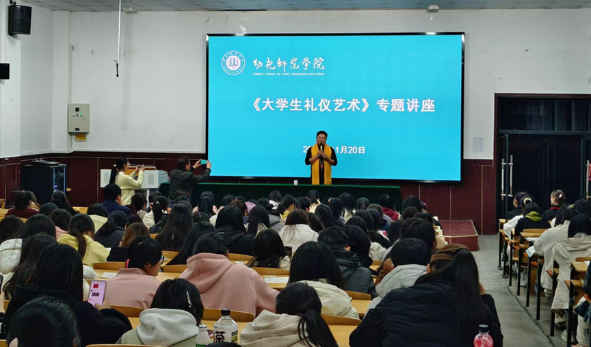 11月20日晚,礼仪艺术培训专家包超教授在城关校区学术报告厅为幼儿师范学院学生作题为《大学生礼仪艺术》的专题讲座。